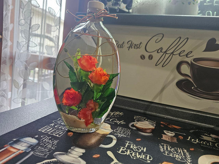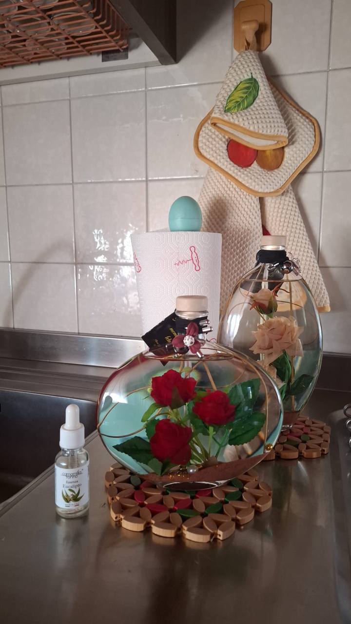 NOVEMBRE 2025Cristina M.Acquisto VerificatoUna sorpresa in cucina!Non pensavo di metterle in cucina, poi per curiosità ho provato a sistemare quella con le rose rosse sul piano vicino al lavello… e ci sta benissimo. Ne ho prese due, una rossa e una con le rose color crema, così da creare un piccolo angolino decorato.La luce naturale le rende ancora più belle e il dettaglio delle perle sul fondo è quello che ha fatto innamorare mio marito (che di solito non nota mai nulla 😅).Ho aggiunto anche l’essenza all’eucalipto e si sente un profumino leggero, molto piacevole mentre cucino. Penso proprio che continuerò la “collezione”!