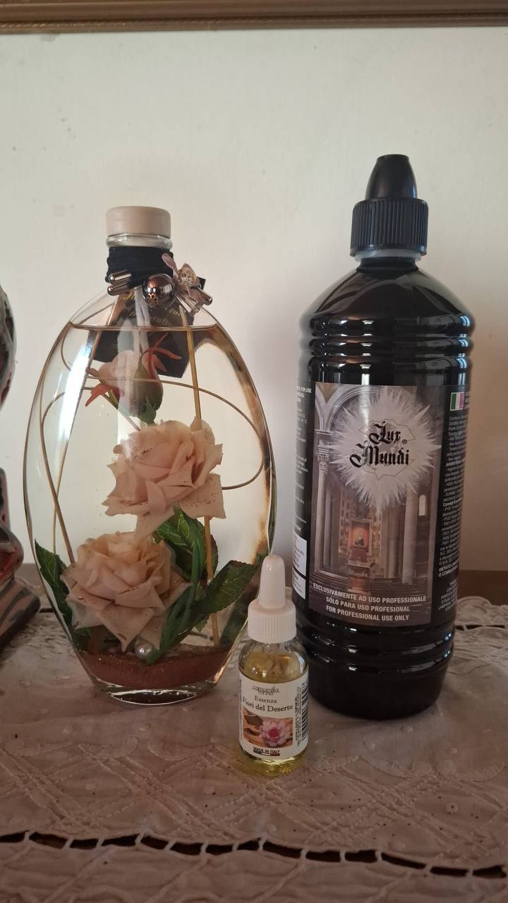 NOVEMBRE 2025Ambra LiguoriAcquisto VerificatoSi integra perfettamente nel mio salotto vintageHo preso la versione con le rose rosa antico perché si abbinava allo stile del mio salotto, molto retrò e devo dire che sembra fatta apposta. Ho preso anche l’olio liturgico e un’essenza profumata, così ho il “set completo” senza dover cercare altrove. L’essenza mi ha sorpreso molto profuma davvero di buono, non è quella roba chimica che svanisce subito. Sono soddisfatta, dà proprio l’idea di qualcosa di curato.