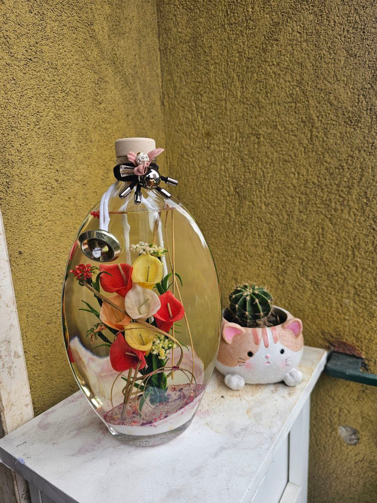 NOVEMBRE 2025SofiaAcquisto VerificatoPiù bella dal vivo che in foto 😍Devo dire che non me l’aspettavo così bella, quando è arrivata l’ho appoggiata fuori sul mobiletto e fa proprio la sua figura. I colori dei fiori sono vivissimi e sembra quasi una decorazione vera, non finta.Il dettaglio con il fiocchetto sopra è troppo carino, mia mamma l’ha vista e già me l’ha chiesta per il suo ingresso 😂Non so quanto durerà ma per ora sono super contenta dell’acquisto.